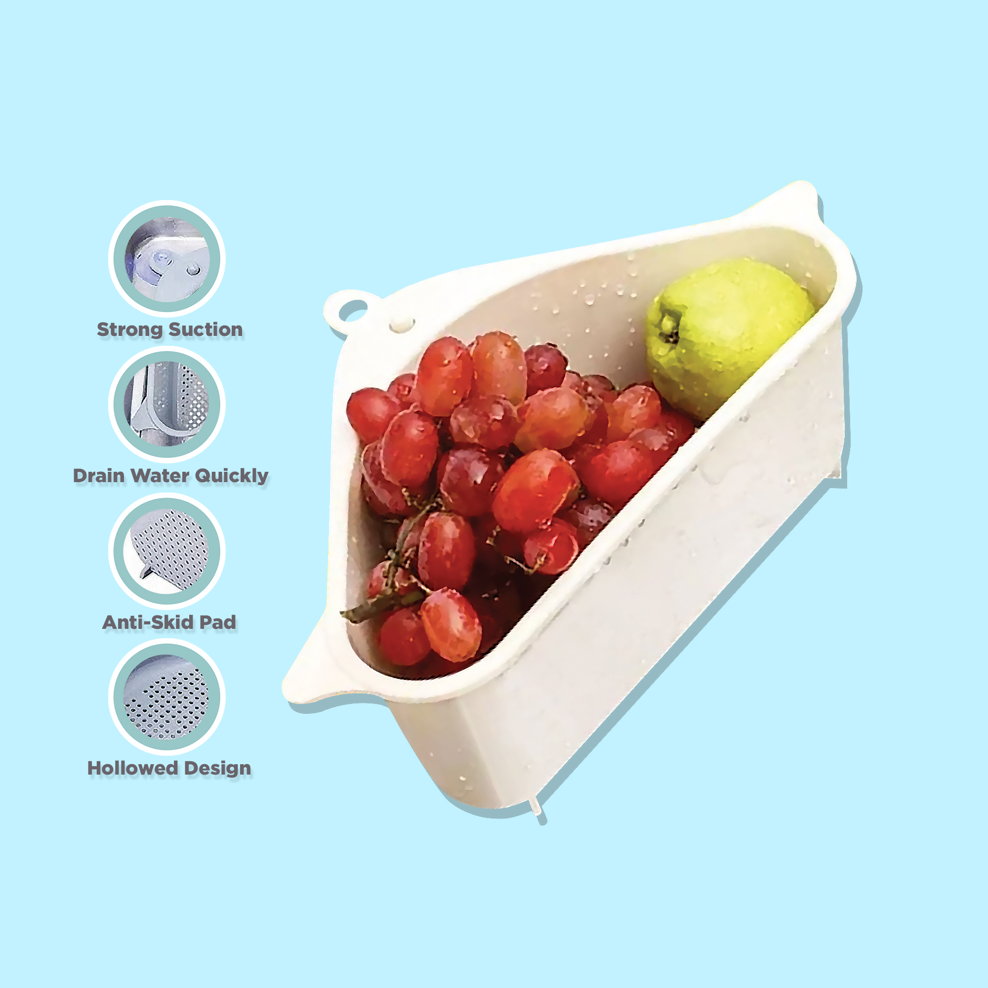 Features: Ideal for soap, toothbrush, sponge drying Full hollow design, ventilation, drainage, easy to install.